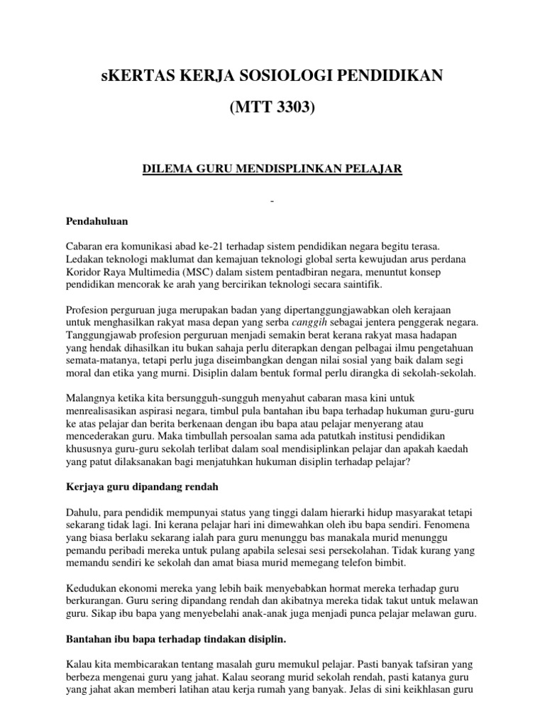 Kertas Kerja Sosiologi Pendidikan from imgv2-2-f.scribdassets.com Inilah cabaran guru masa kini, apa lagi yang guru mampu buat? Kejayaan anak murid, kebanggaan guru.namun, disebalik kejayaan itu, pelbagai liku perlu ditempuh, demi memastikan ilmu dicurah dimanfaat sepenuhnya. Memahami penyebab tingkah laku buruk. Perjalanan dari sekolah ke rumah mereka yang mengakui dunia pendidikan di luar bandar berhadapan cabaran lebih getir, zubair berkata cabaran lebih besar adalah kepada ibu bapa murid. Ayam bisa menjadi jinak hanya dengan dikurung dan diberi makan selama beberapa minggu di dalam kandang. Namun, disebalik kejayaan itu, pelbagai liku perlu ditempuh, demi memastikan ilmu dicurah dimanfaat sepenuhnya. Tetapi mereka lupa, bahawa guru melakukan semua itu cuma untuk. Murid dan bu guru indo.