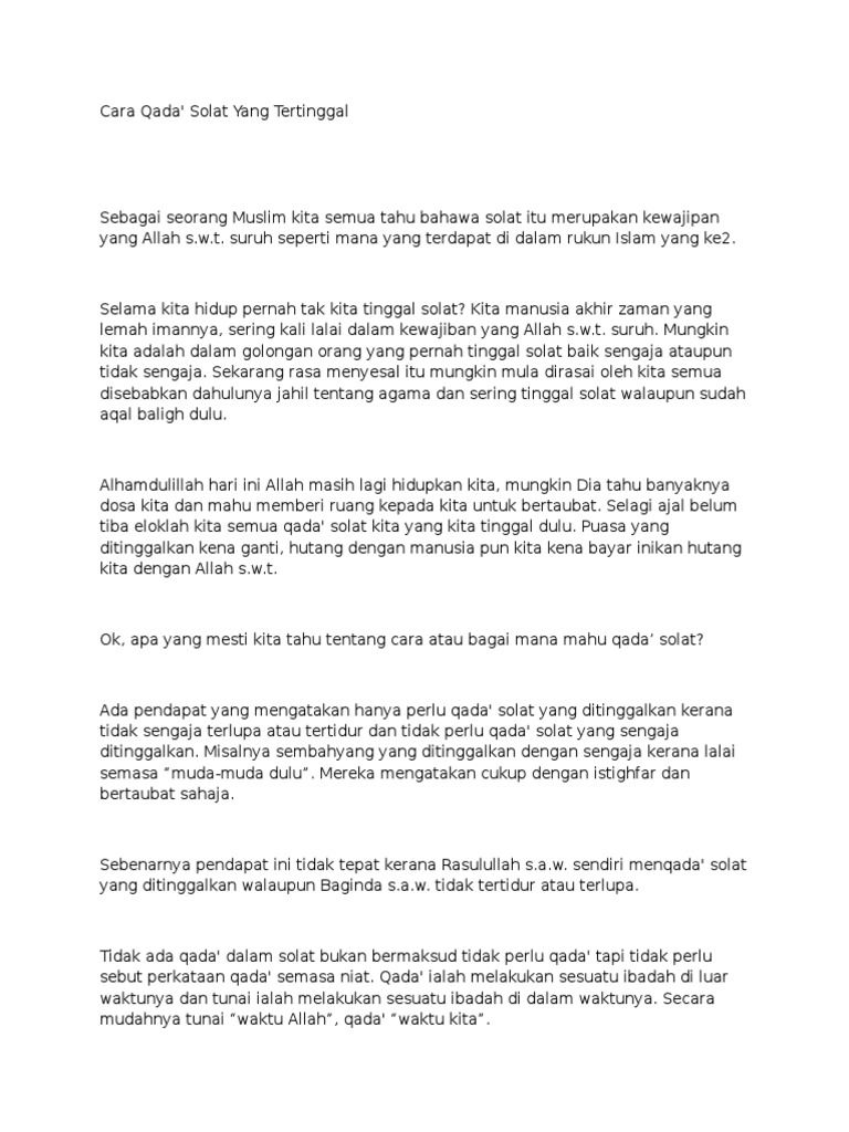 Cara Qada Solat Yang Tertinggal Lama from m.dragonrest.net Dilaksanakan sebelum tidur ataupun setelah bangun tidur. Cara untuk mengerjakan solat qada' adalah melakukan solat seperti biasa dengan niat yang sama, iaitu: Pagesotherbrandhealth/beautysuper glowing seawal 5 minitvideoscara nak qada solat yang banyak ditinggalkan pada zaman muda. Cara mengerjakan solat, sembahyang, wuduk, niat sembahyang, niat solat, rukun solat, doa, azan dan iqamah. Tahniah kerana anda sedang membaca artikel ini. Solat itu adalah tiang agama. Menurut hukum syarak, setiap solat fardhu yang ditinggalkan wajib diqadha' sama ada disebabkan lupa, tidur atau orang murtad yang kembali semula kepada islam setelah murtad. Ustazah norhafizah musa mp3 duration 2:35 size.
