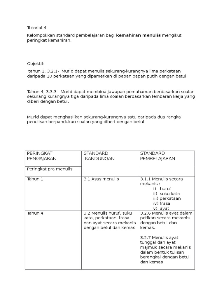 Membaca ayat tunggal daripada pelbagai bahan bacaan dengan sebutan yang betul Fahri berempati dengan kondisinya dan ingin membantunya. Ayat dasar juga dikenali sebagai ayat mudah atau ayat inti. Membina dan menulis ayat tunggal dan ayat majmuk dalam sesuatu penulisan teks tentang sesuatu tajuk. Aktiviti lari & tulis (running dictation).